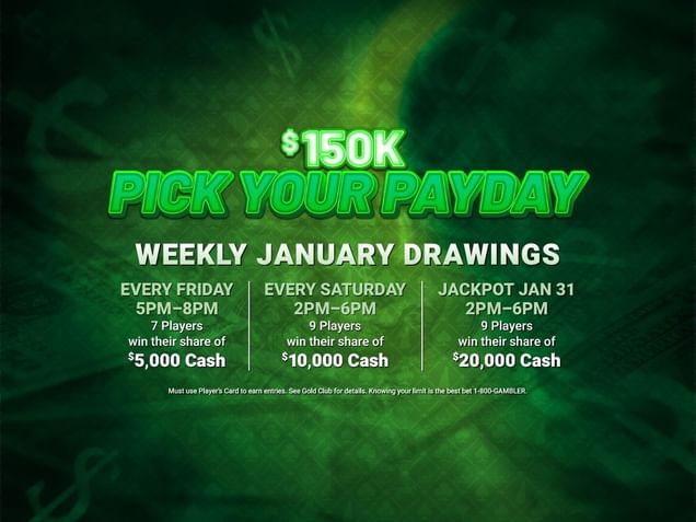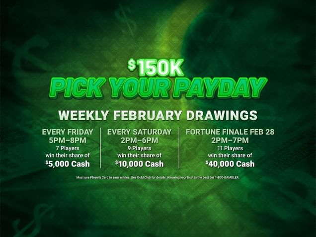 Win thousands every Friday & Saturday. Earn entries every Sunday - Thursday through February 28th. 250 Points = 1 Entry. Entries can be placed into whichever drawing barrel(s) a player chooses. One player will win $25k grand prize on February 28th.