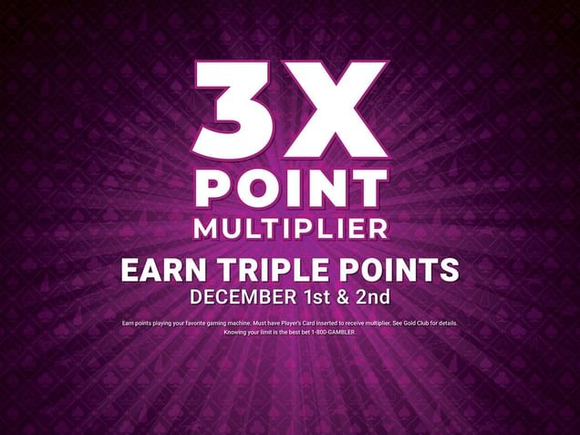 Earn 3X Points on your favorite gaming machines - December 1st & 2nd.