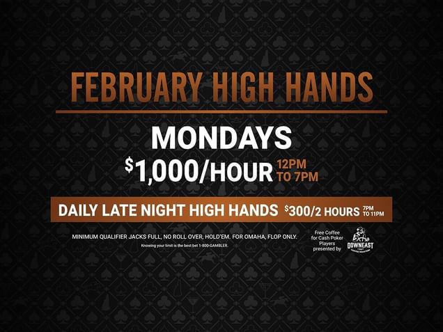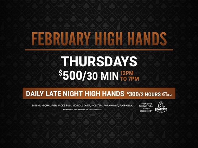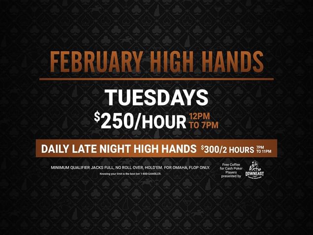 DAILY LATE NIGHT HIGH HANDS 7PM - 11PM $300 / 2 hours