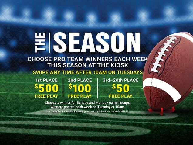 Choose pro team winners each week for Sunday and Monday games! Swipe your card at the kiosk any time after 10am every Tuesday - all season long.